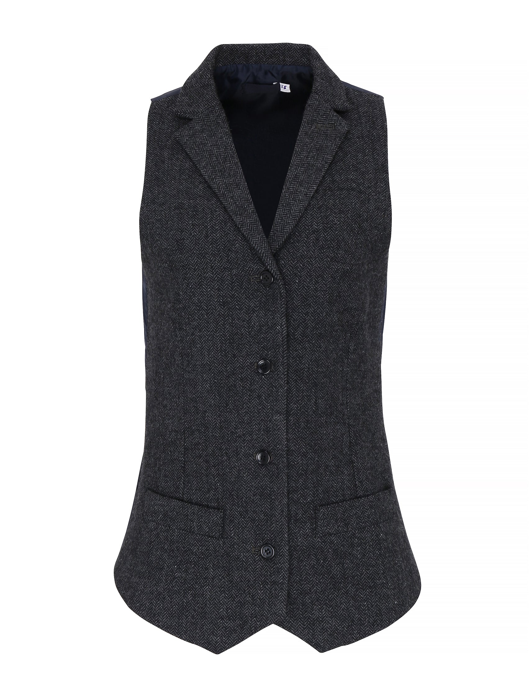 Discover sophistication and practicality with our Women's Herringbone Waistcoat. This elegant piece integrates seamlessly into any professional wardrobe, offering a chic and polished look that exudes confidence. Expertly tailored from a blend of 50% wool, 45% polyester, and 5% mixed fibre, this waistcoat provides durability and comfort in equal measure.