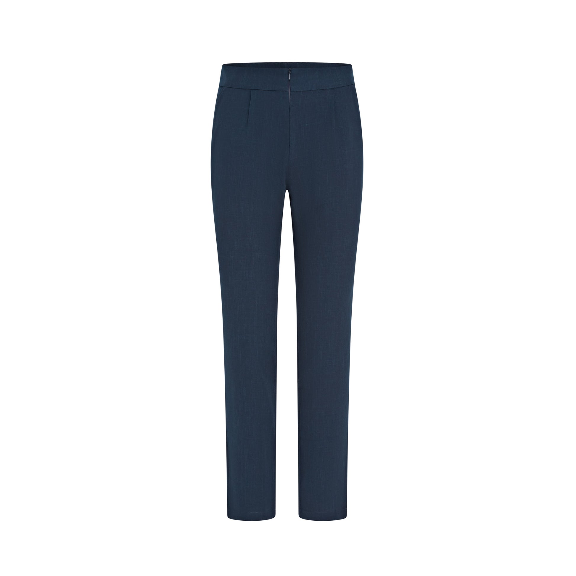 - Features: Concealed elasticated waistband, slim leg, high waist, front zip fastening, side pockets