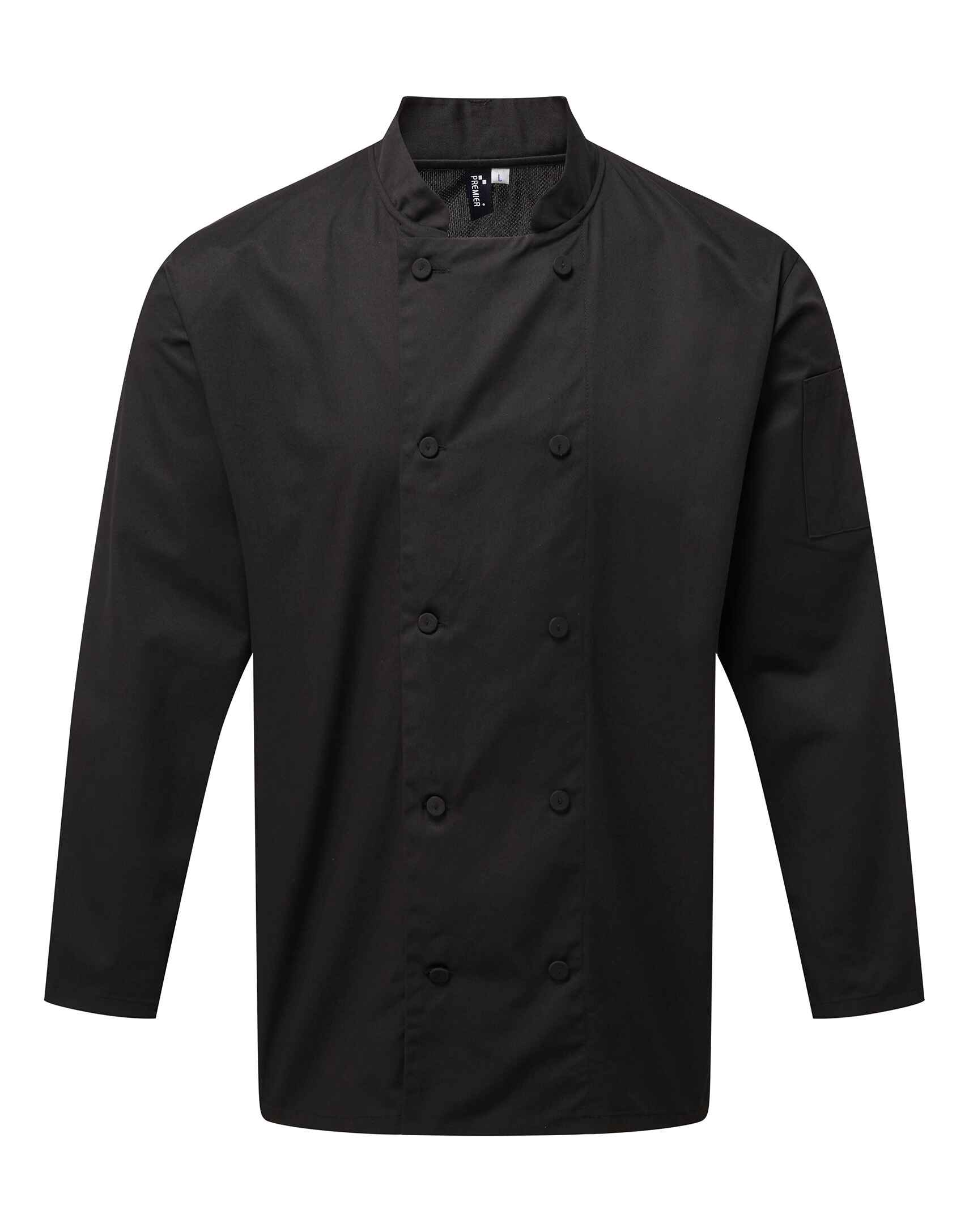The Premier Coolchecker® Long Sleeve Chef's Jacket is designed for those who demand both functionality and style in professional settings. Engineered with advanced Coolchecker® fabric technology, this jacket enhances breathability and moisture control, ensuring you stay comfortable in the heat of the kitchen. Its sleek design is perfect for hospitality, retail, and food service professionals.