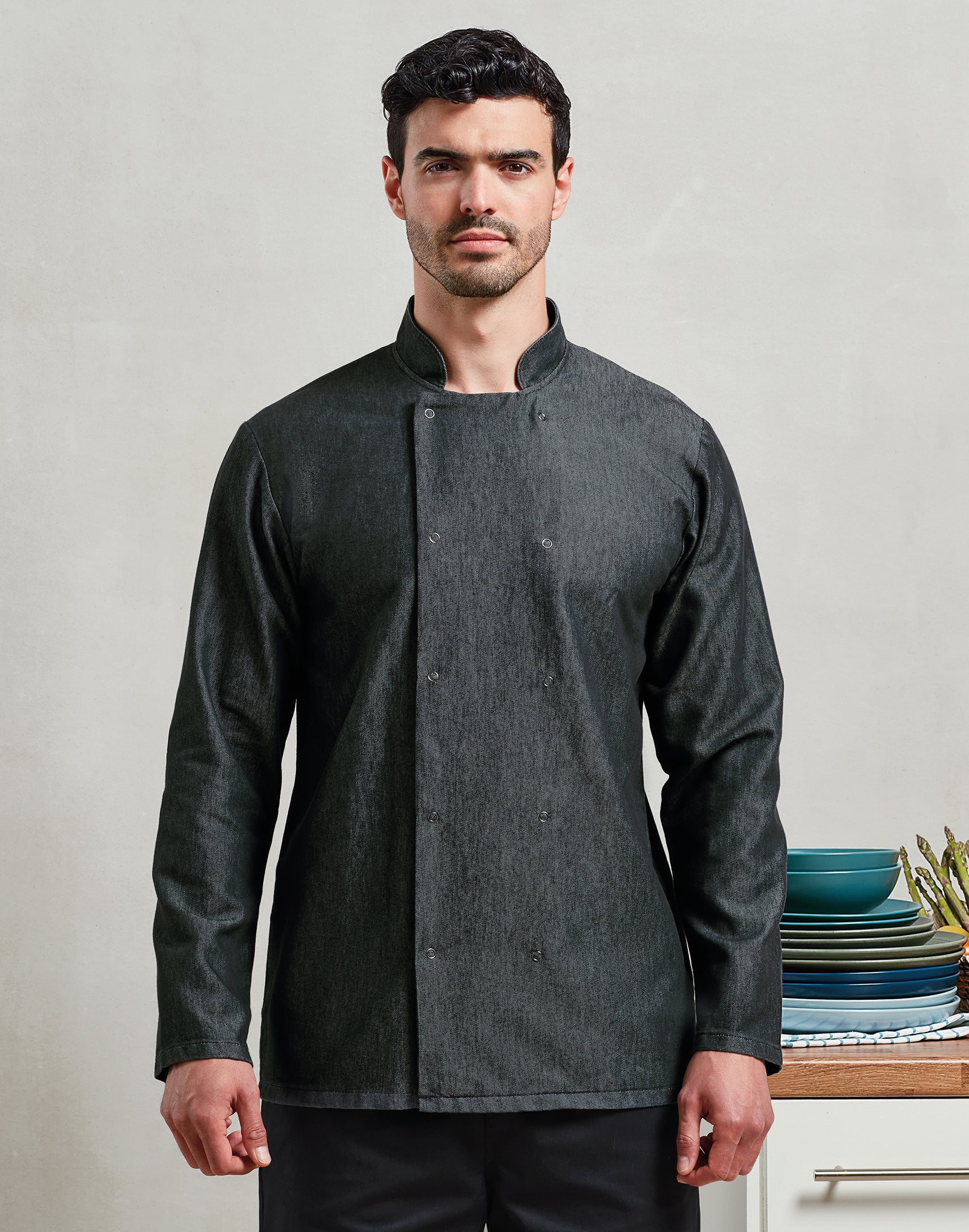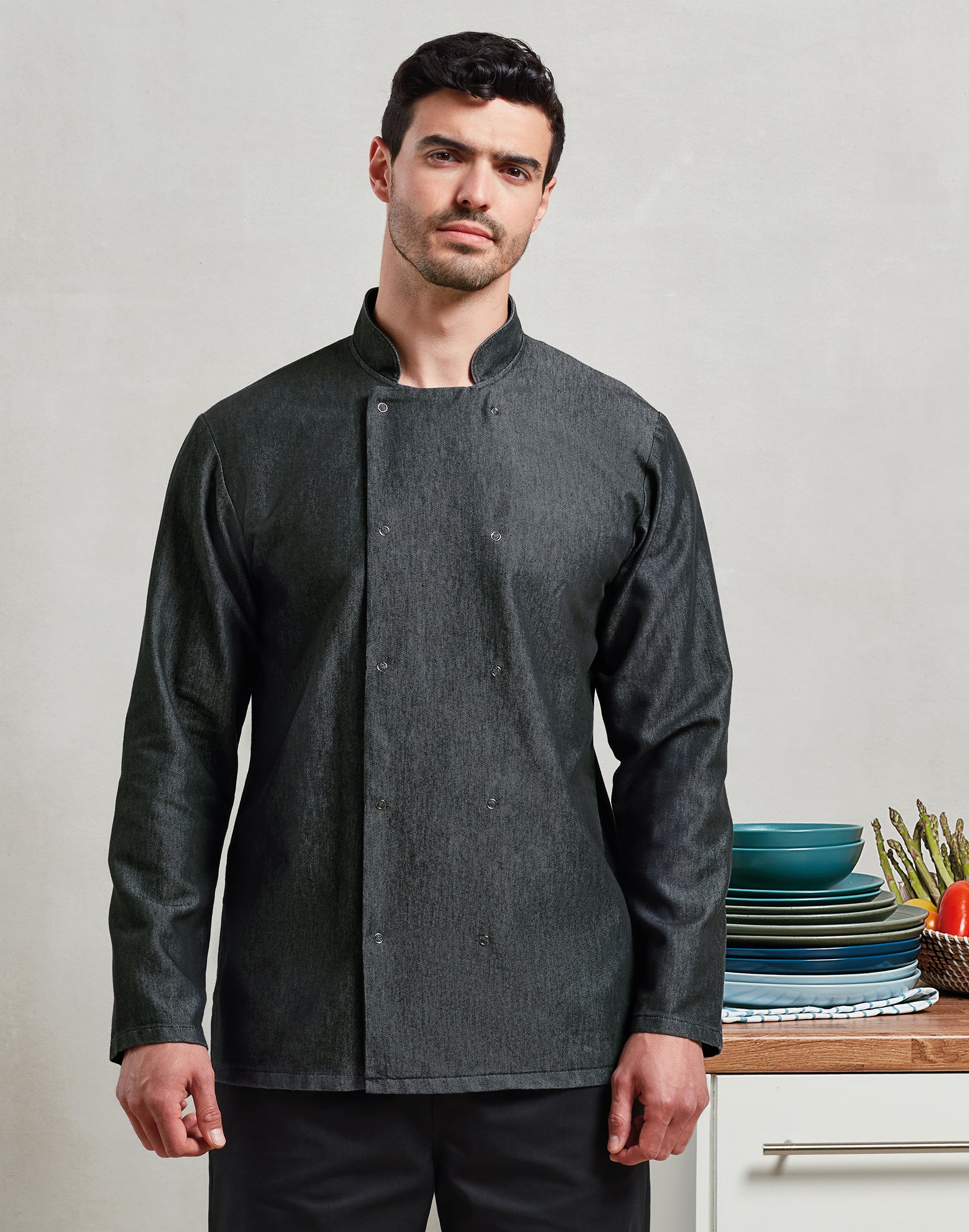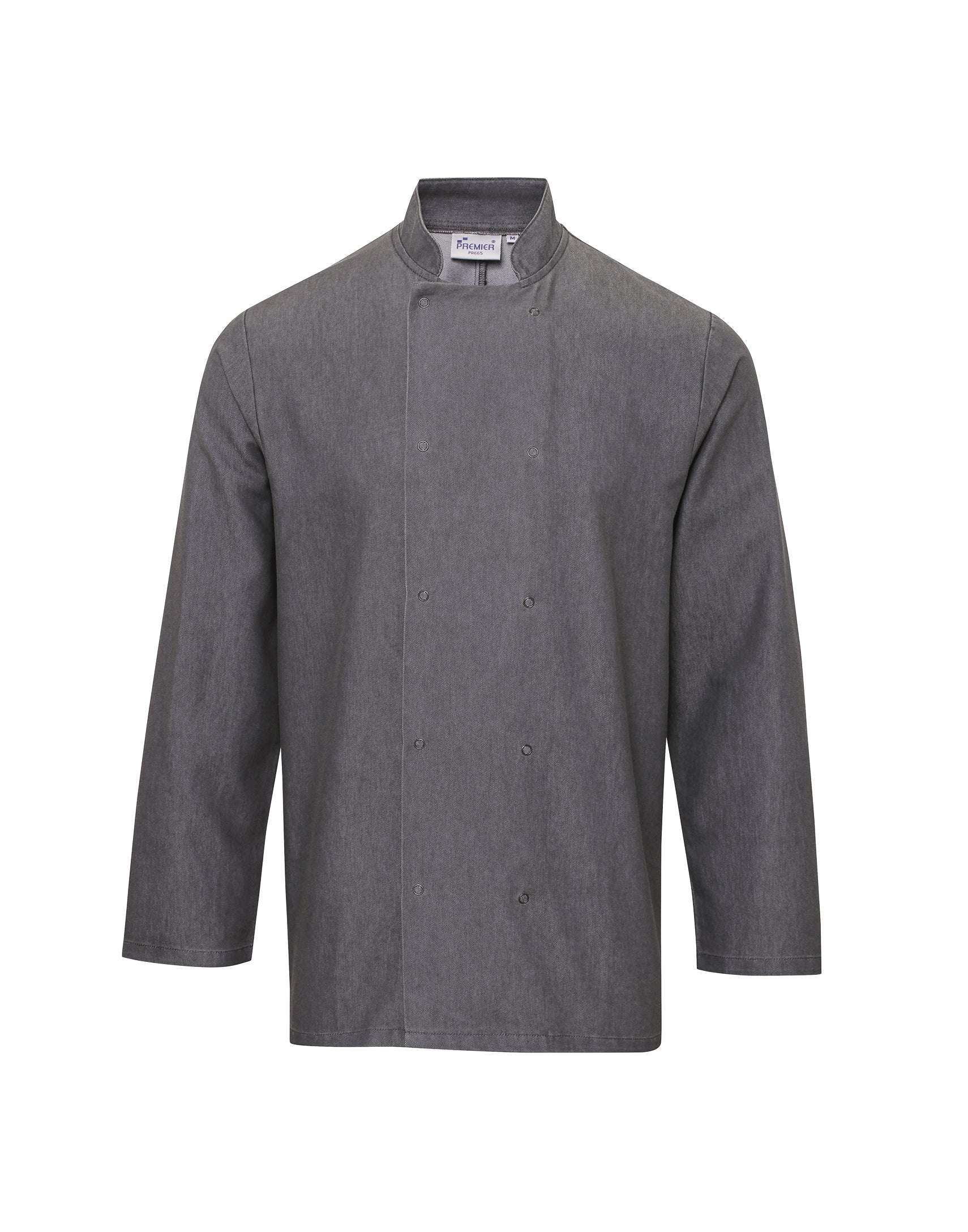 The jacket embraces modernity with its distinctive denim look, making it a versatile addition alongside traditional chef whites. Whether embroidering your name or brand, this jacket can be customized to reflect your professional identity.