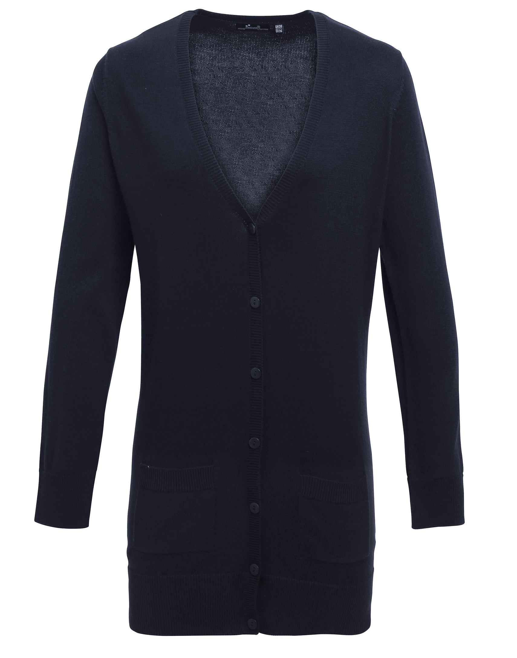 This cardigan is not only functional with its two front patch pockets but also allows for personalisation with embroidery, making it unique to your style or brand. The five-button fastening adds a classic touch, blending seamlessly into your wardrobe as a versatile layering piece.